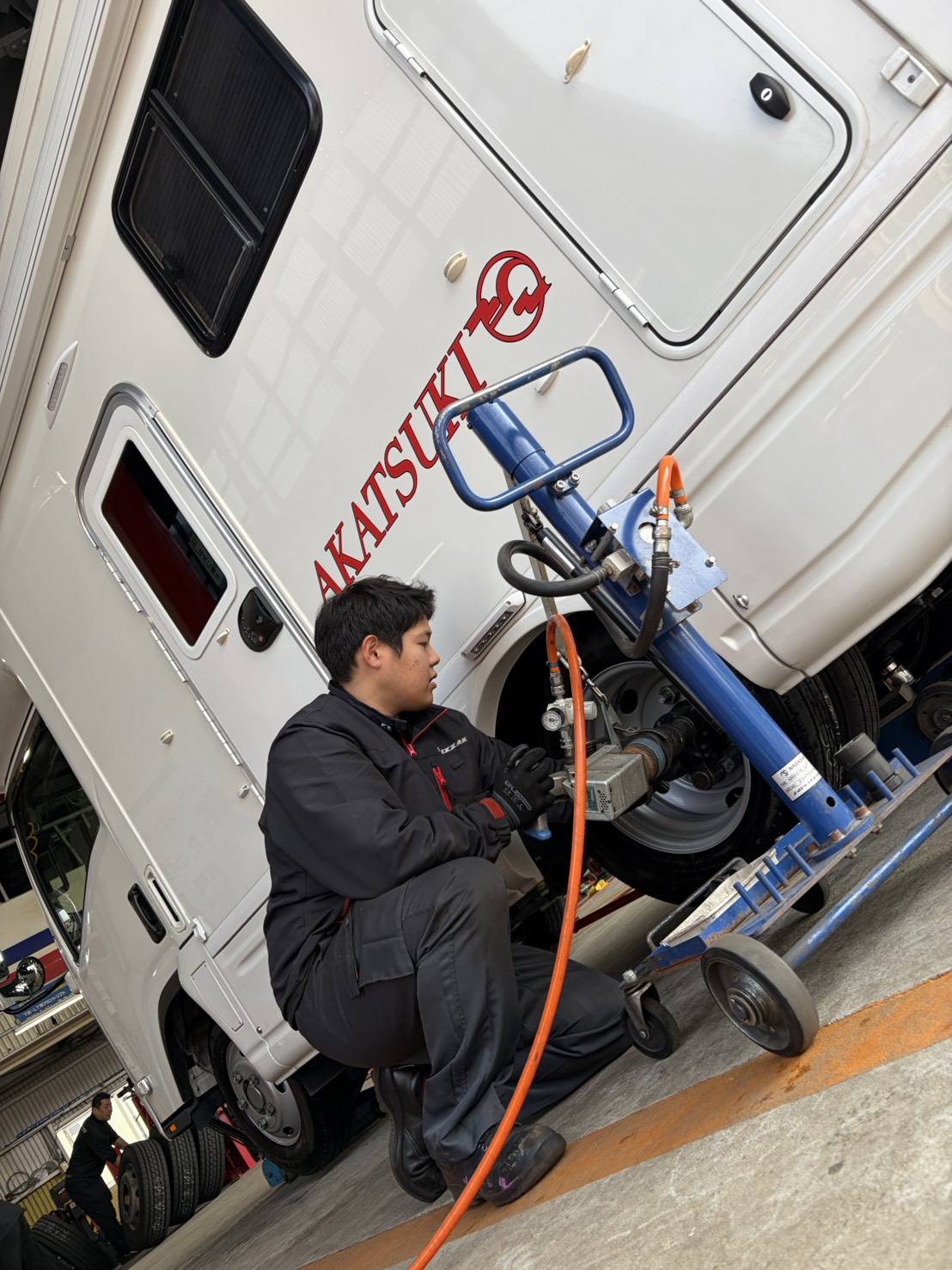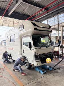先日、いすゞエルフのキャンピングカーのタイヤ交換をしましたよ!